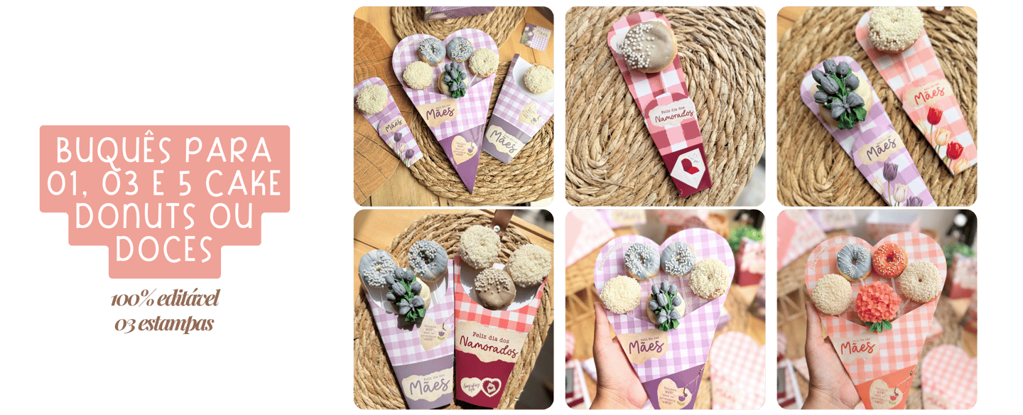 +150 artes em vários modelos para cake donuts, doces ou presentes para DIA DAS MÃES E DIA DOS NAMORADOS, 100% editáveis, prontos para imprimir! Ideal para quem quer se destacar, agregar valor e transformar cada venda em uma experiência inesquecível.